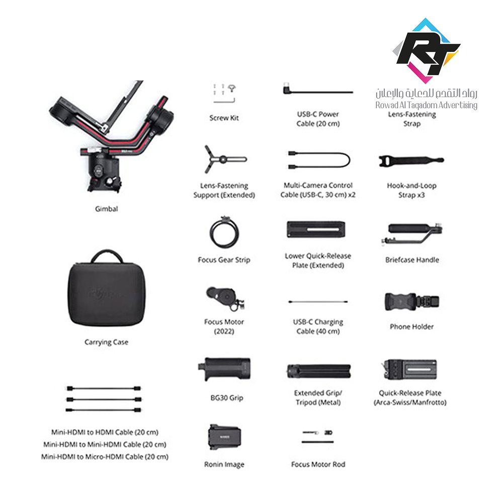تتضمن المجموعة حامل الهاتف، ومحرك التركيز كابلات تحكم متعددة للكاميرات